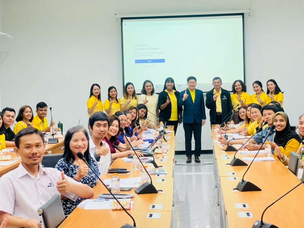 On May 13, 2024, building department personnel attended a training on Ministry of Finance regulations on government procurement and supplies management 2017 by speakers from the Nakhon Si Thammarat Provincial Treasury Office through the Microsoft Teams program from 9:00 a.m. – 4:30 p.m. at Meeting Room 1, Academic Building 5, Walailak University, with Dr. Mongkol Teerananon, Assistant Rector Welcoming and giving advice on supplies operations to the trainees.