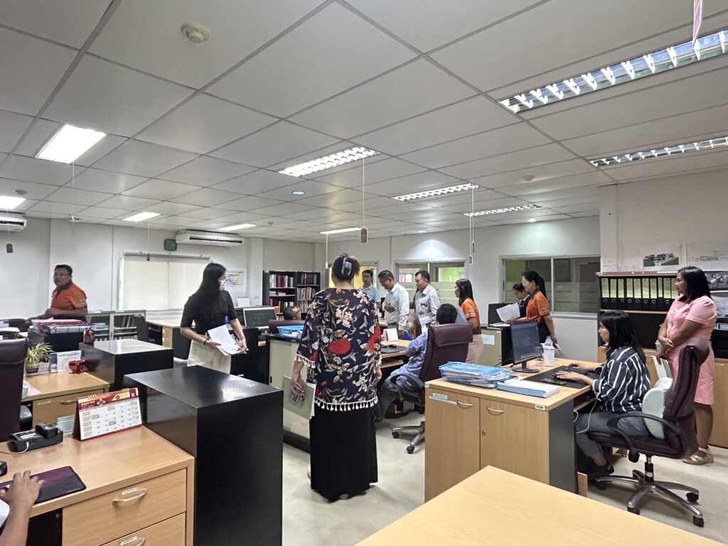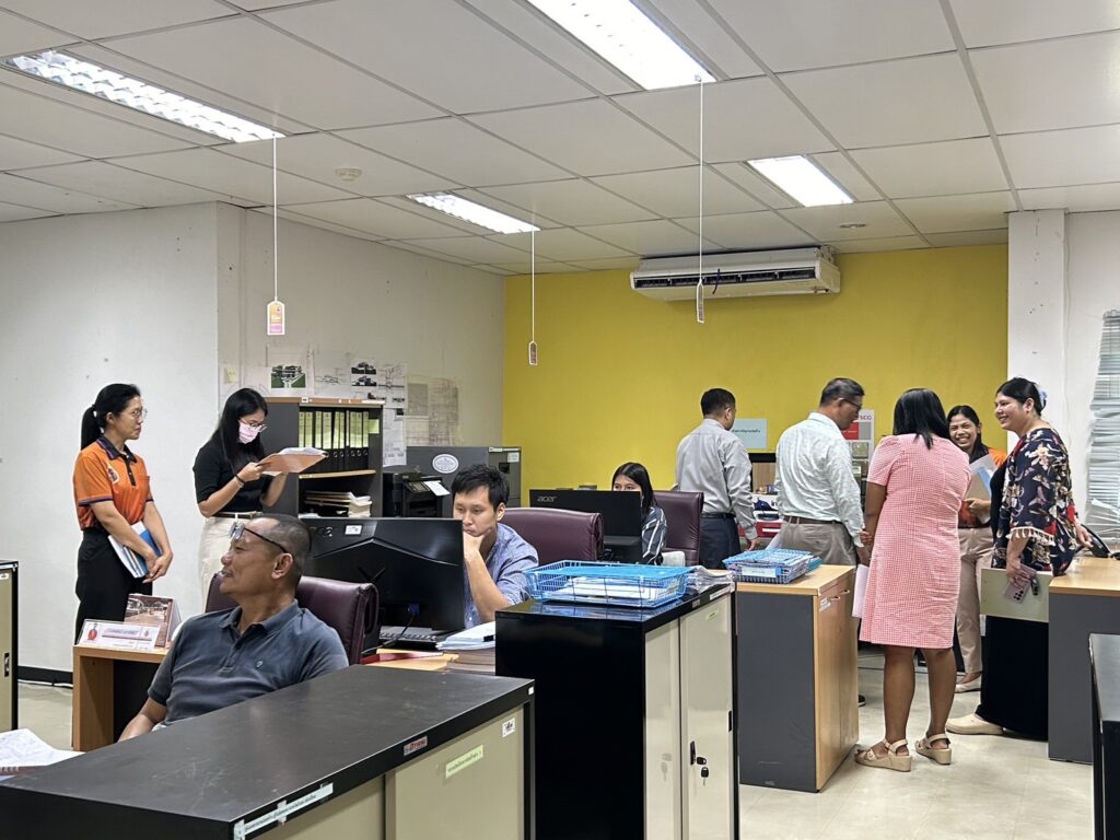 On May 24, 2024 at 1:30 p.m., building personnel Join in welcoming the 5S Central Committee to inspect the actual area for the first time in fiscal year 2024 at the building and premises section. With Mr. Ekkarat Kaewkhieo as the chairman of the area assessment. In addition, he also gave advice for preparing for the next examination.