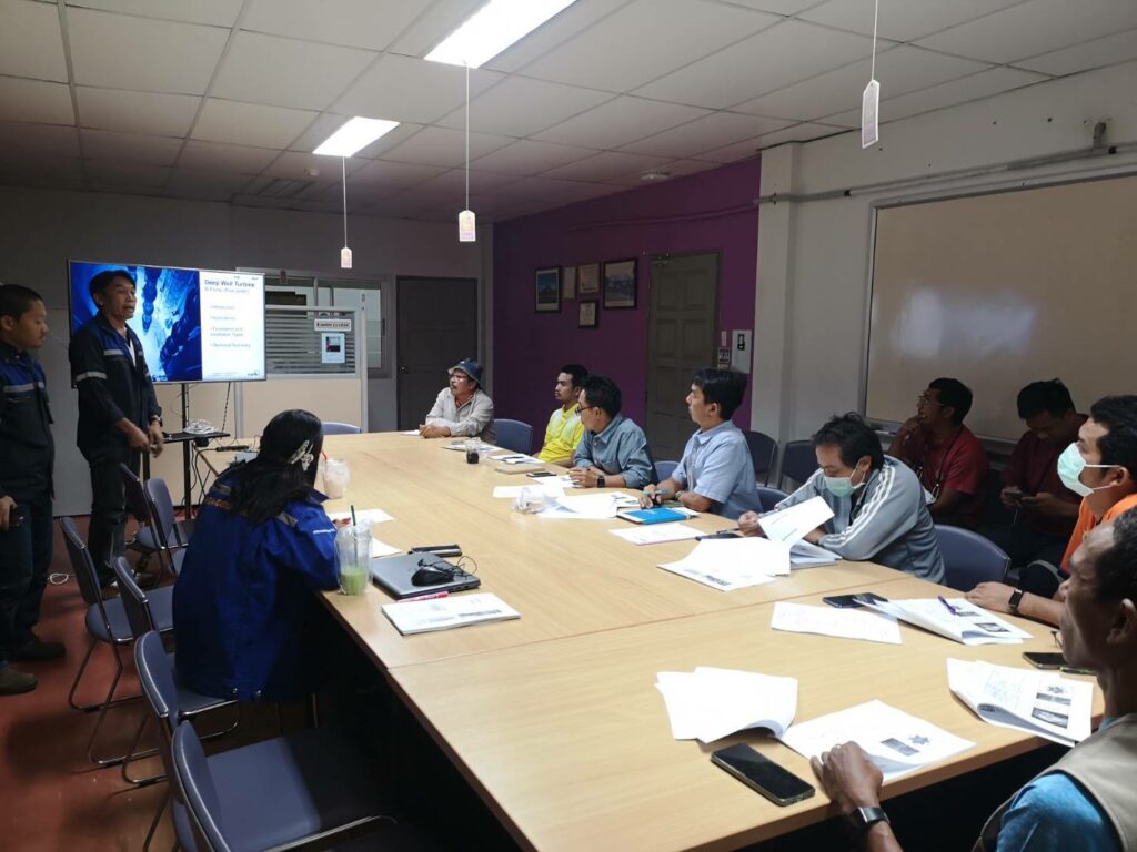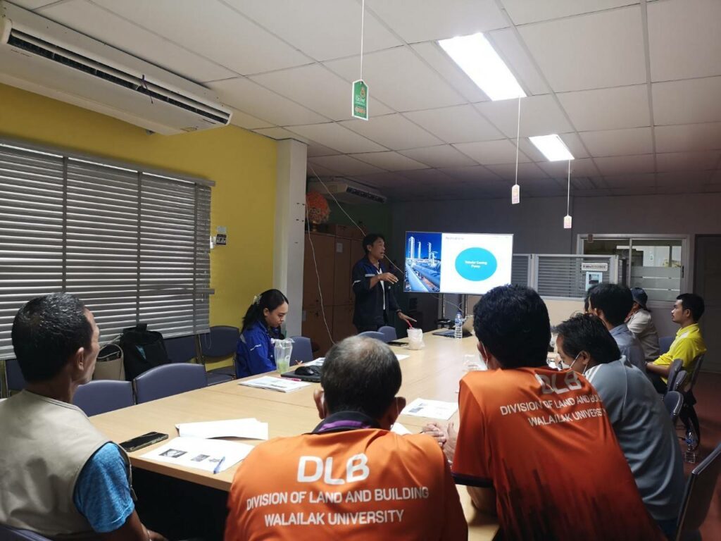 On June 20, 2024 at 9:00 a.m. – 4:00 p.m., location personnel Led by Mr. Apirun Busayakul, Acting Waterworks Plant Supervisor along with employees of the waterworks Plant. Participated in training and training on the use and maintenance of water pumps at the medical center’s water production plant by Nithi Natthakorn Engineering Company Limited and KSB Thai Land Company Limited, which are distributors of water pumps. Brand KSB in Thailand is a speaker in the training. The training is divided into 2 periods. The 1st period is training in the use and various operating procedures at the meeting room of the building. The 2nd period is training and using actual machines at the medical center’s water production plant.